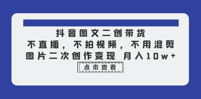 抖音图文二创带货 不直播,不拍视频,也不用混剪视频,就是把图片进行二次创作,然后通过抖音“图文来了”的形式发布图片,接着通过挂车变现