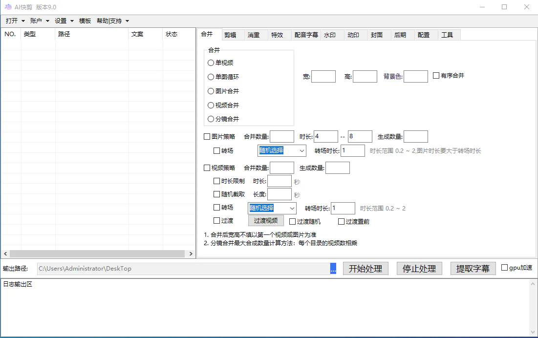 支持横屏竖屏转换,多种效果及增加背景图片等一键合成;